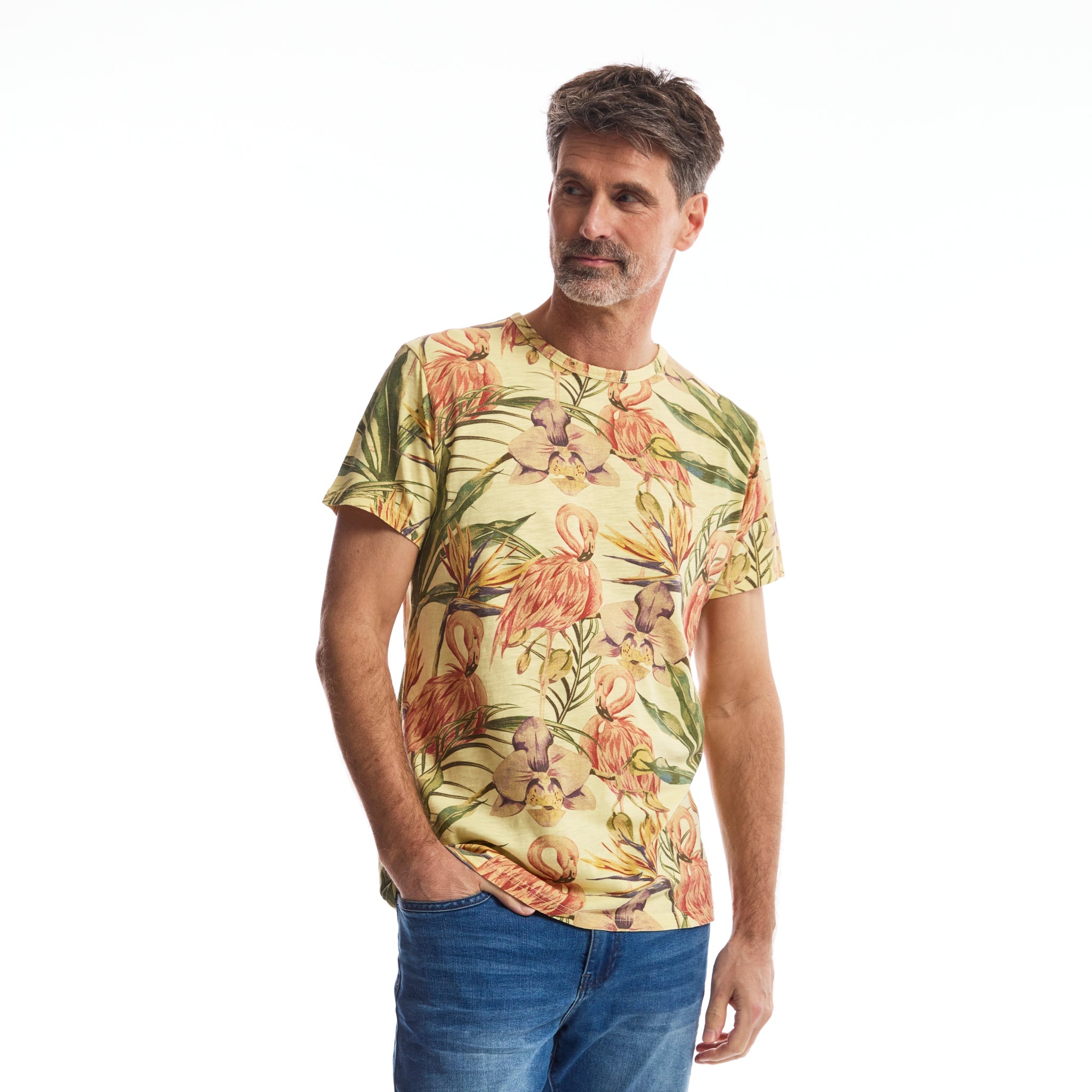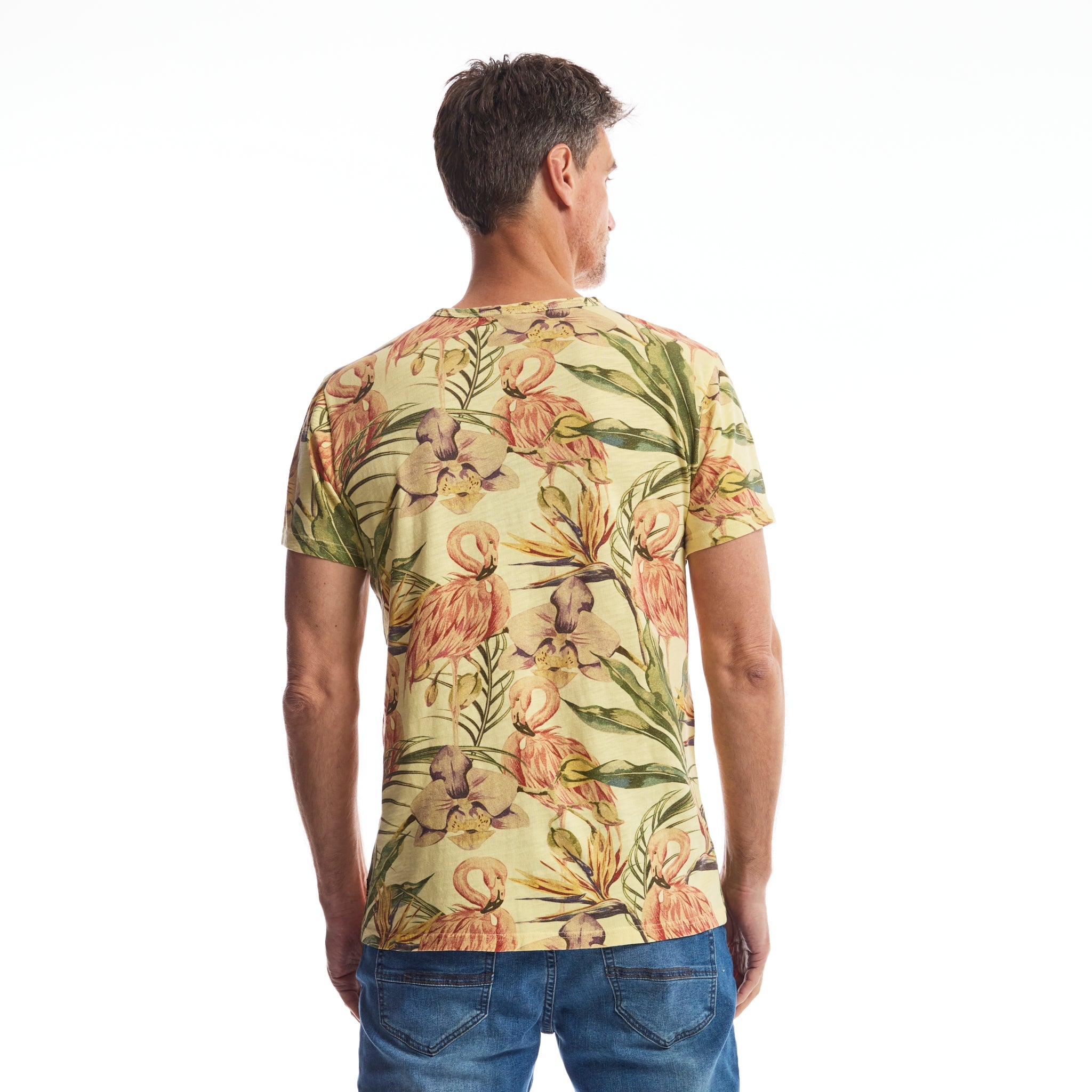 Dit heren T-shirt is een absolute eyecatcher! Met zijn all over print en ronde hals is het de perfecte aanvulling op elke outfit. Gemaakt van 100% combed cotton single jersey, biedt dit shirt comfort en duurzaamheid. Met een gewicht van 180 gsm voelt het licht aan op de huid.